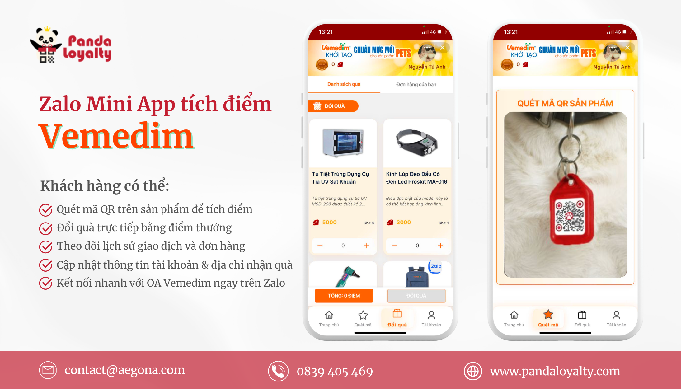 Với mục tiêu mang đến trải nghiệm hiện đại, tiện lợi và thân thiện, Panda Loyalty hợp tác cùng Vemedim phát triển Zalo Mini App tích điểm, giúp người dùng quét mã sản phẩm, tích lũy điểm và đổi quà ngay trên Zalo, mà không cần tải ứng dụng riêng.